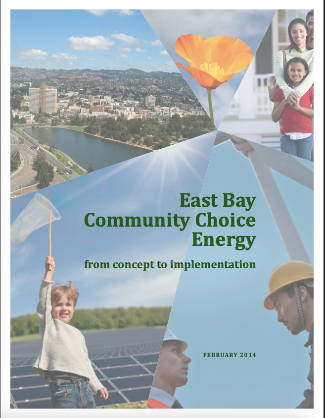 Communities across California are seeking ways to address the impacts of climate change and boost their local economies. Many are exploring Community Choice energy as a vehicle for achieving these objectives. Community Choice is a means by which city and county governments can aggregate or cluster electricity customers to provide electricity and related energy services. As a result, the local community can shape the program to prioritize desired benefits. For example, a Community Choice program determines the source of its electricity, so it can focus on a higher level of local renewable energy sources if that reflects what the community values. A Community Choice program can be a true energy service provider, integrating energy supply with demand reduction in a manner that meets community goals related to climate action, employment creation, price stability and local control. Accordingly, electricity customers will have an alternative provider option to the incumbent investor-owned utility. An example development scenario and proforma financial analysis included in this study shows that an East Bay Community Choice energy program encompassing Alameda County could lead to the following results withi
